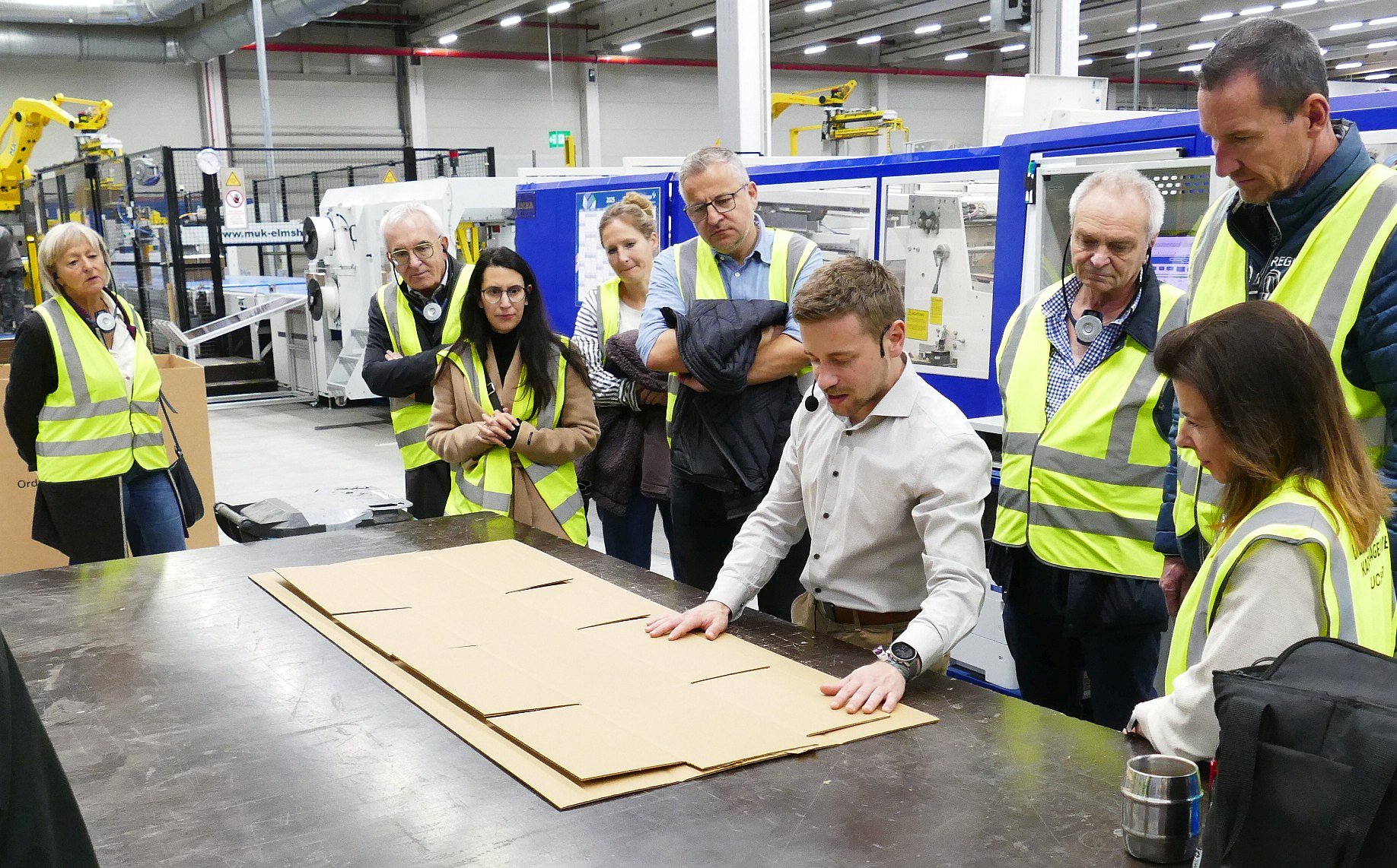 Mit einem herzlichen Empfang durch die Geschäftsführung – Bernhard Schön sen., Marion Forster – sowie die leitenden Angestellten begann eine eindrucksvolle Unternehmenspräsentation im Liebensteiner Kartonagenwerk. Seit der Gründung im Jahr 1968 wird der Familienbetrieb mittlerweile in dritter Generation erfolgreich weiterentwickelt.